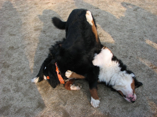シェビーとラム、いつも こんな調子で遊んでます。(外でも家でも・・・)