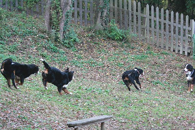 この日 バニ達はランで遊び、飼い主はおしゃべりに花を咲かせ