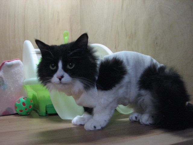 2週間後の抜糸までレオタード猫として我が家を闊歩してくれるでしょう!