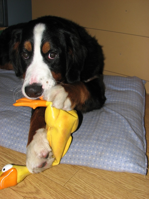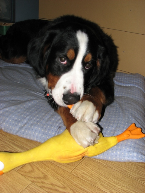 我が家のアヒルさん、シェビーとラムの引っ張りっこにも耐え
